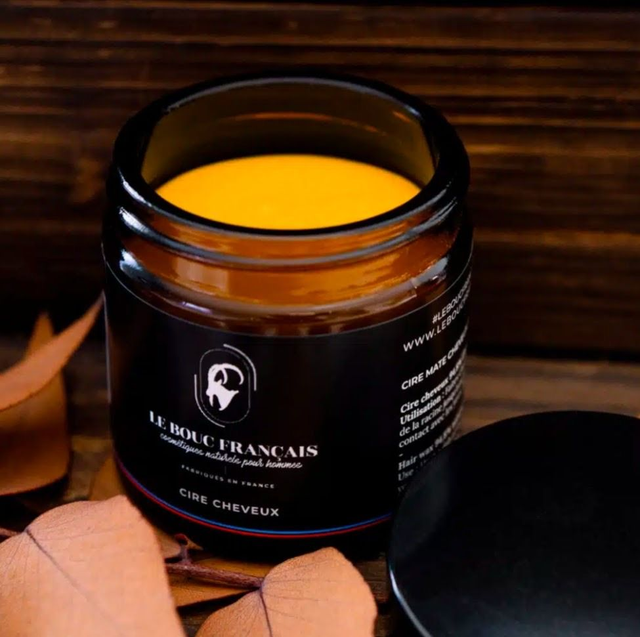 Cire de cheveux à base de miel et cire d'abeille blanche.